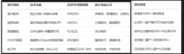 增量空间 :单台GB300用铜箔价值量提升3倍 → 2025年全球市场空间 40亿美元 (隆扬电子单吨净利3.5万元)。